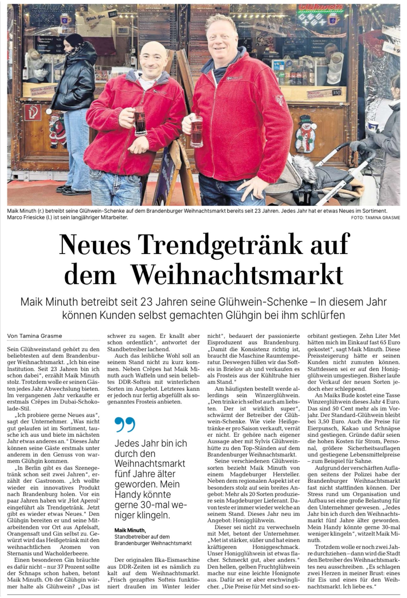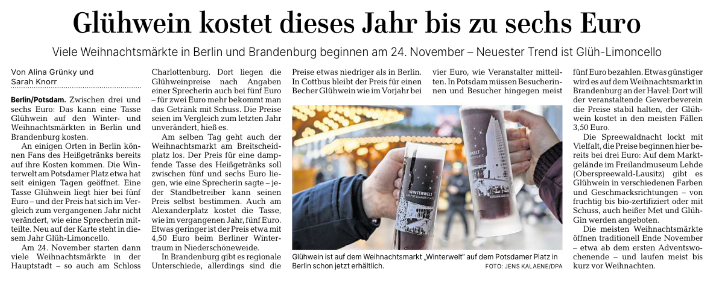 MAZ vom 20. November 2025Glühwein kostet dieses Jahr bis zu sechs Euro